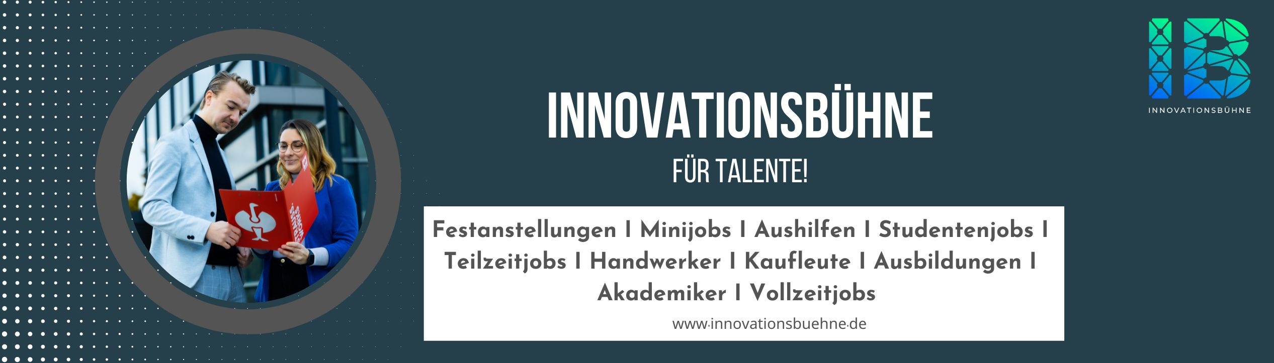 Wichtiger Hinweis: Die Innovationsbühne ist keine Personalvermittlung oder Leih/Zeitarbeitsfirma. Wir verwalten außschließlich die Stellen unserer Kunden.